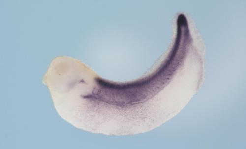 hoxc6 (homeobox C6) gene expression in Xenopus laevis embryo, assayed via in situ hybridization, NF stage 33 & 34, lateral view, anterior left, dorsal up. Copyright © Soeren S Lienkamp Image created by: Soeren S Lienkamp