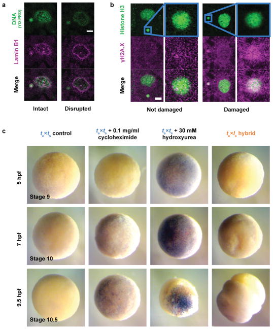Hybridization of eggs and sperm from closely related species can give rise to genetic diversity, or can lead to embryo inviability owing to incompatibility. Although central to evolution, the cellular and molecular mechanisms underlying post-zygotic barriers that drive reproductive isolation and speciation remain largely unknown. Species of the African clawed frog Xenopus provide an ideal system to study hybridization and genome evolution. Xenopus laevis is an allotetraploid with 36 chromosomes that arose through interspecific hybridization of diploid progenitors, whereas Xenopus tropicalis is a diploid with 20 chromosomes that diverged from a common ancestor approximately 48 million years ago. Differences in genome size between the two species are accompanied by organism size differences, and size scaling of the egg and subcellular structures such as nuclei and spindles formed in egg extracts. Nevertheless, early development transcriptional programs, gene expression patterns, and protein sequences are generally conserved. Whereas the hybrid produced when X. laevis eggs are fertilized by X. tropicalis sperm is viable, the reverse hybrid dies before gastrulation. Here we apply cell biological tools and high-throughput methods to study the mechanisms underlying hybrid inviability. We reveal that two specific X. laevis chromosomes are incompatible with the X. tropicalis cytoplasm and are mis-segregated during mitosis, leading to unbalanced gene expression at the maternal to zygotic transition, followed by cell-autonomous catastrophic embryo death. These results reveal a cellular mechanism underlying hybrid incompatibility that is driven by genome evolution and contributes to the process by which biological populations become distinct species.