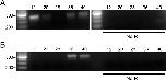 Fig 1. X. laevis embryonic stages show VSP mRNA transcripts expression.(A-B) Semi-quantitative RT-PCR (sqRT-PCR) of a panel of X. laevis embryos (NF stage 12–40) using PCR primers specific for Xl-VSP1 (A) and Xl-VSP2 (B). Both Xl-VSP1 and Xl-VSP2 transcripts appear to accumulate by stage 36. No bands were seen without reverse transcriptase (bottom). All cDNAs were made with equal amounts of total RNA as determined by spectrophotometry and confirmed by agarose gel electrophoresis to visualize ribosomal RNA bands (S1 Fig). sqRT-PCR was repeated at least two times with at least two different embryonic cohorts. The expected PCR amplicon sizes are 389 bp for Xl-VSP1 and 478 bp for Xl-VSP2. Shown are representative gels.