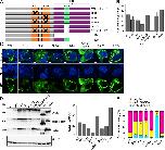 Figure 7. Phase separation is RNA binding dependent. (A) Location of mutations in the domains of isoform E. (B and C) U2OSΔFFF cells were transfected with WT PCMV2xTetO2-mNeonGreen-FXR1 isoform E (pAGB1162), plasmids with mutated KH1 (pAGB1171), KH2 (pAGB1172), KH1/2 (pAGB1173), RGG (pAGB1174), RGG and KH1/2 (pAGB1175), complete IDD (pAGB1176), or partial IDD (pAGB1177). All constructs were induced with 25 ng/ml Tet to endogenous levels. Black Xs indicate mutated regions. (B) Quantification of droplet formation. n > 350 cells from three experiments. (C) Representative images of cells expressing the different mutants. Scale bar, 5 µm. (D) Whole-cell extracts (WCE), lysate, and pellets were analyzed by Western blotting using an antibody against FXR1. Right: percent protein in the pellet quantified as in Fig. 5. (E) Quantification of droplet morphology using the same three categories that were used in Fig. 5. Data are means ± SEM. |