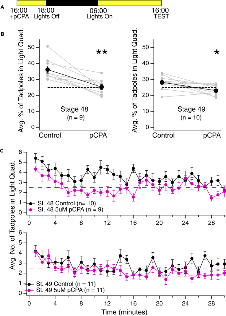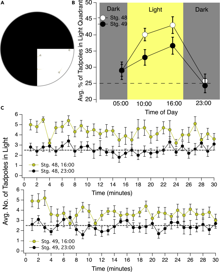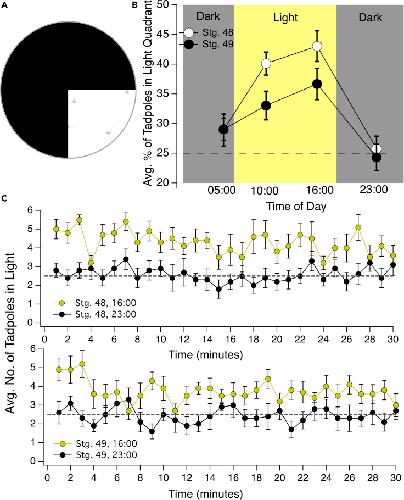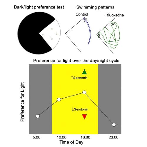 A circadian-dependent preference for light displayed by Xenopus tadpoles is modulated by serotonin.