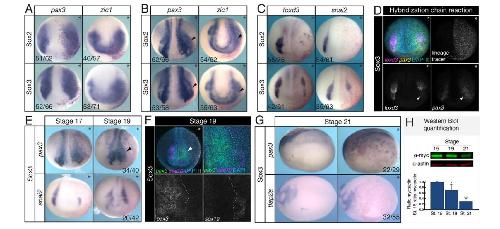 left/right side targeting. (B) In situ hybridization for pax3 and zic1 on wildtype and triplemorphant neural plate border-induced explants (stage 13). (C) Proposed model for