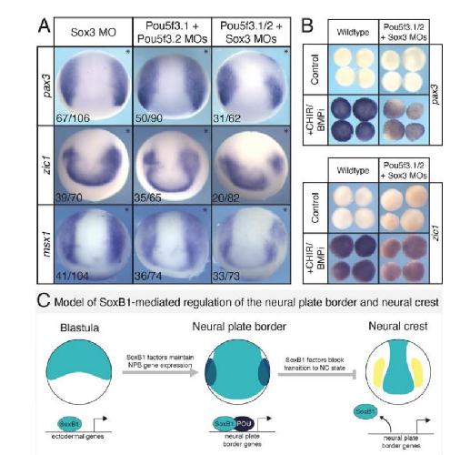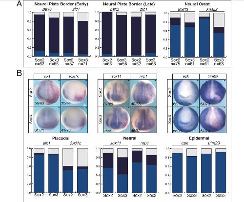 stem cells and neural plate border cells with colored boxes (red/blue) indicating Sox3