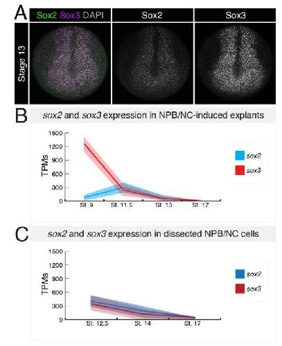 TPMs for sox2 (blue) and sox3 (red) from dissected neural plate border/neural crest