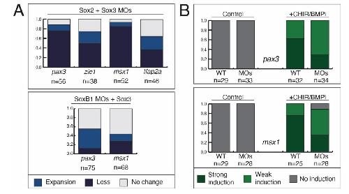 embryos with changes in gene expression (loss, expansion, no change) for sox3