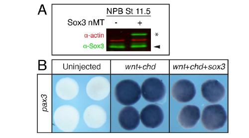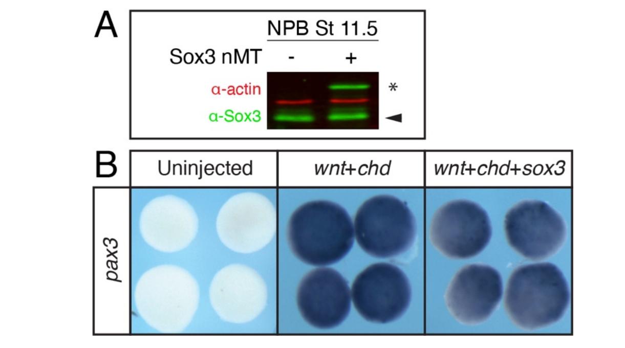 deonotes myc-tagged sox3. (B) In situ hybridization for pax3 in neural plate borderinduced explants with and without myc-tagged sox3. |