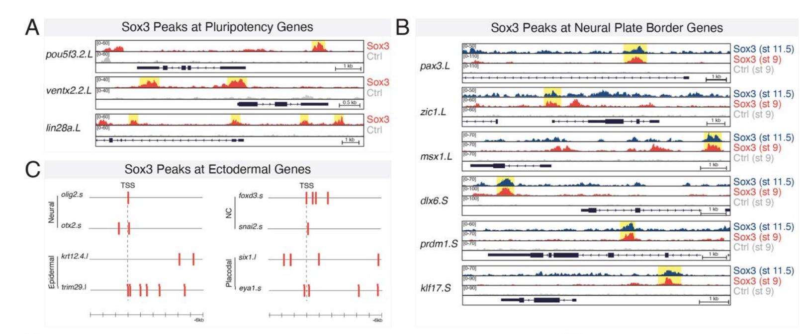 Fig. 4. ChIP-seq in early neural plate border cells reveals Sox3 enrichment at