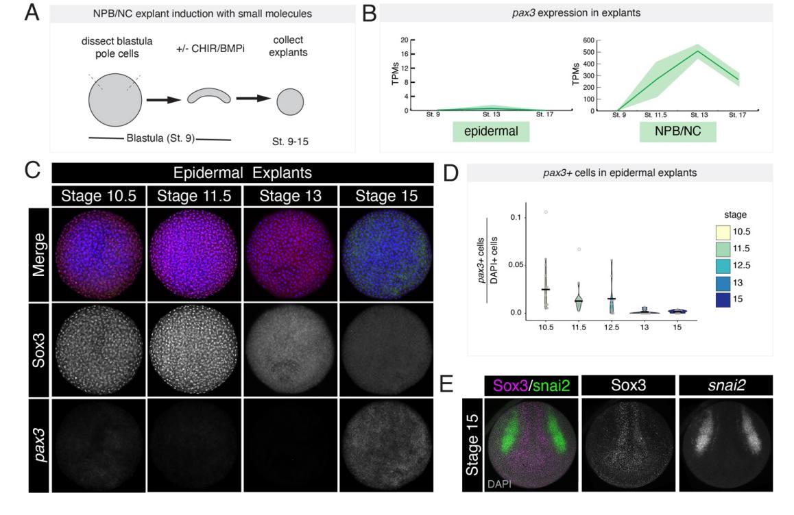 shown in blue. (D) Quantification of percent pax3+ cells in epidermal explants. (E)