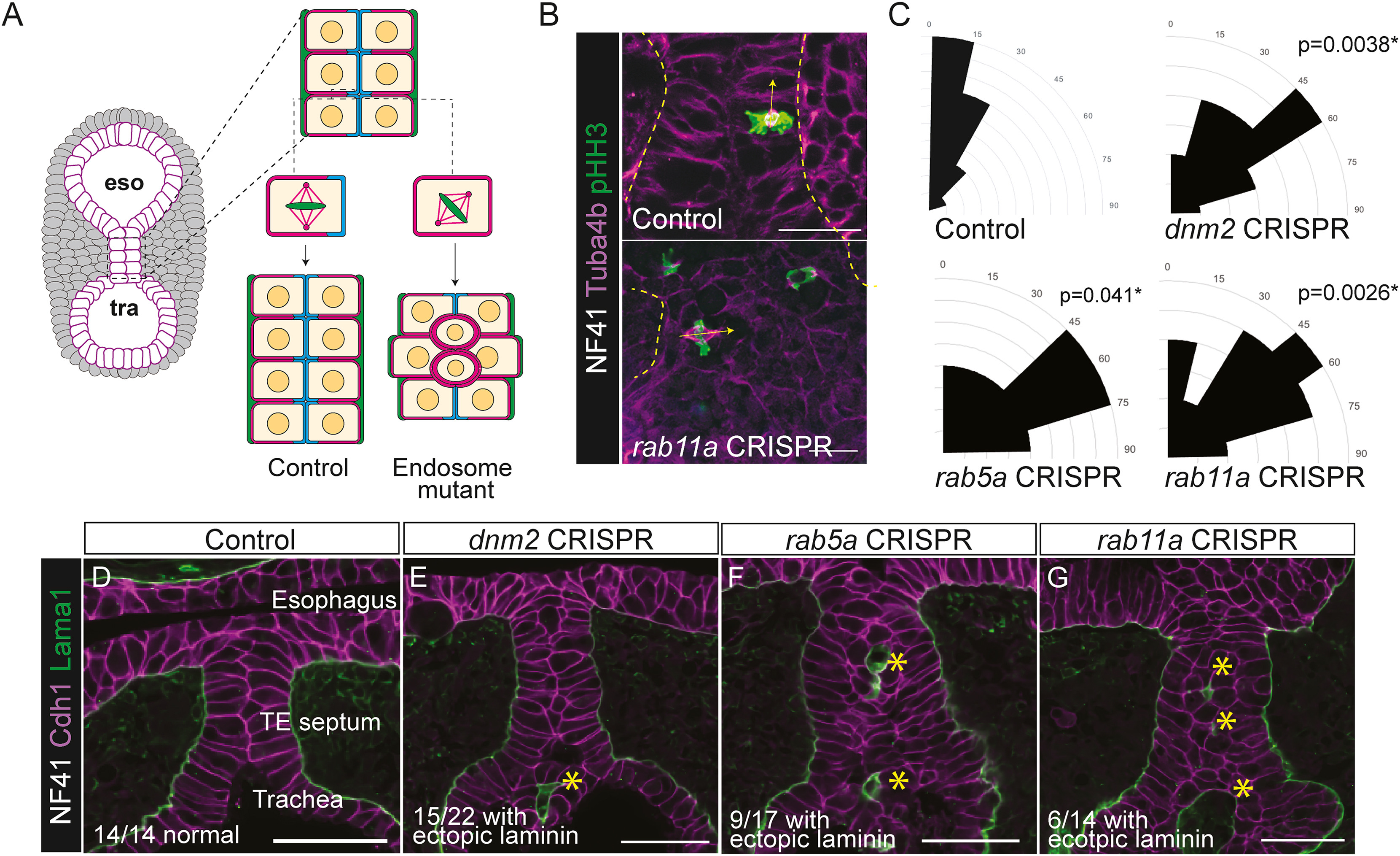 Figure 2. Dynamic endosome localization and epithelial remodeling during tracheoesophageal morphogenesis