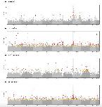 SI Fig. 5. Association between single nucleotide polymorphisms and sex across the whole genome. For the allotetraploid species (X. calcaratus, X. mellotropicalis, X. epitropicalis) data from both subgenomes are mapped to the reference genome from the diploid X. tropicalis. A signal of association of variants in the beginning of chromosome 7 is apparent in all species (albeit weaker for X. mellotropicalis, see main text). |