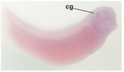 Larger Image ppp1r2 (protein phosphatase 1 regulatory inhibitor subunit 2) gene expression in Xenopus laevis embryo, assayed via in situ hybridization, NF stage 33/34, lateral view, anterior right, dorsal up. This image is extracted from figure published in: Butler AM et al. (2018), Image published in: Butler AM et al. (2018) Copyright © 2018. Image reproduced with permission of the Publisher and the copyright holder. This is an Open Access article distributed under the terms of the Creative Commons Attribution License.