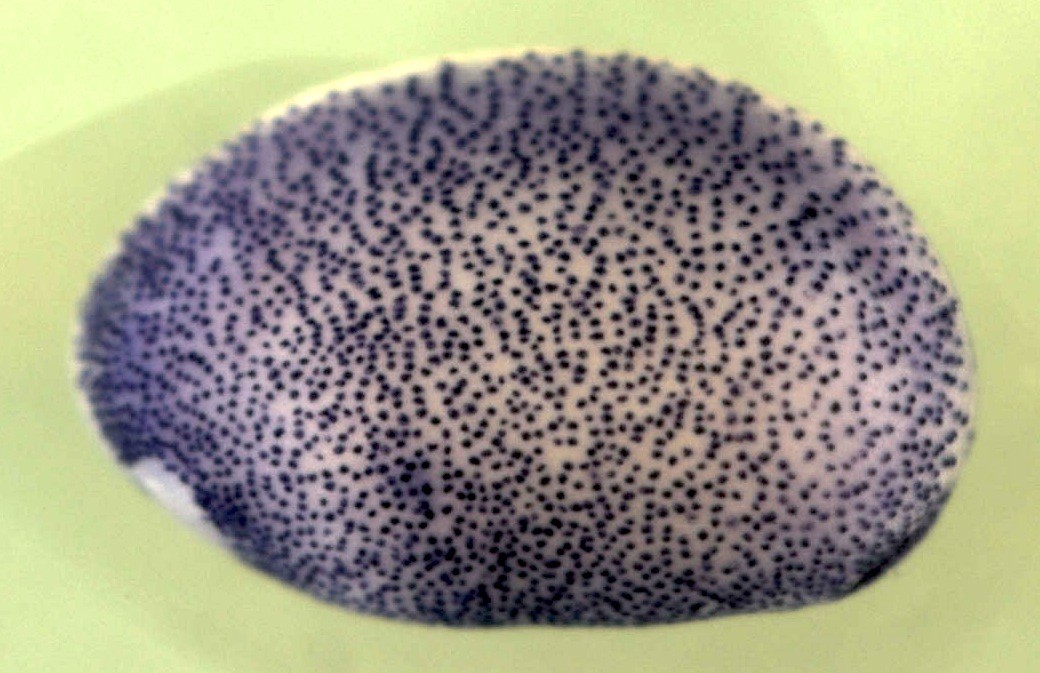 Larger Image odf3 (outer dense fiber of sperm tails 3 ) expression in Xenopus laevis embryo, NF stage 21, as assayed via in situ hybridization, lateral view, anterior left, dorsal up. Copyright © XDB3